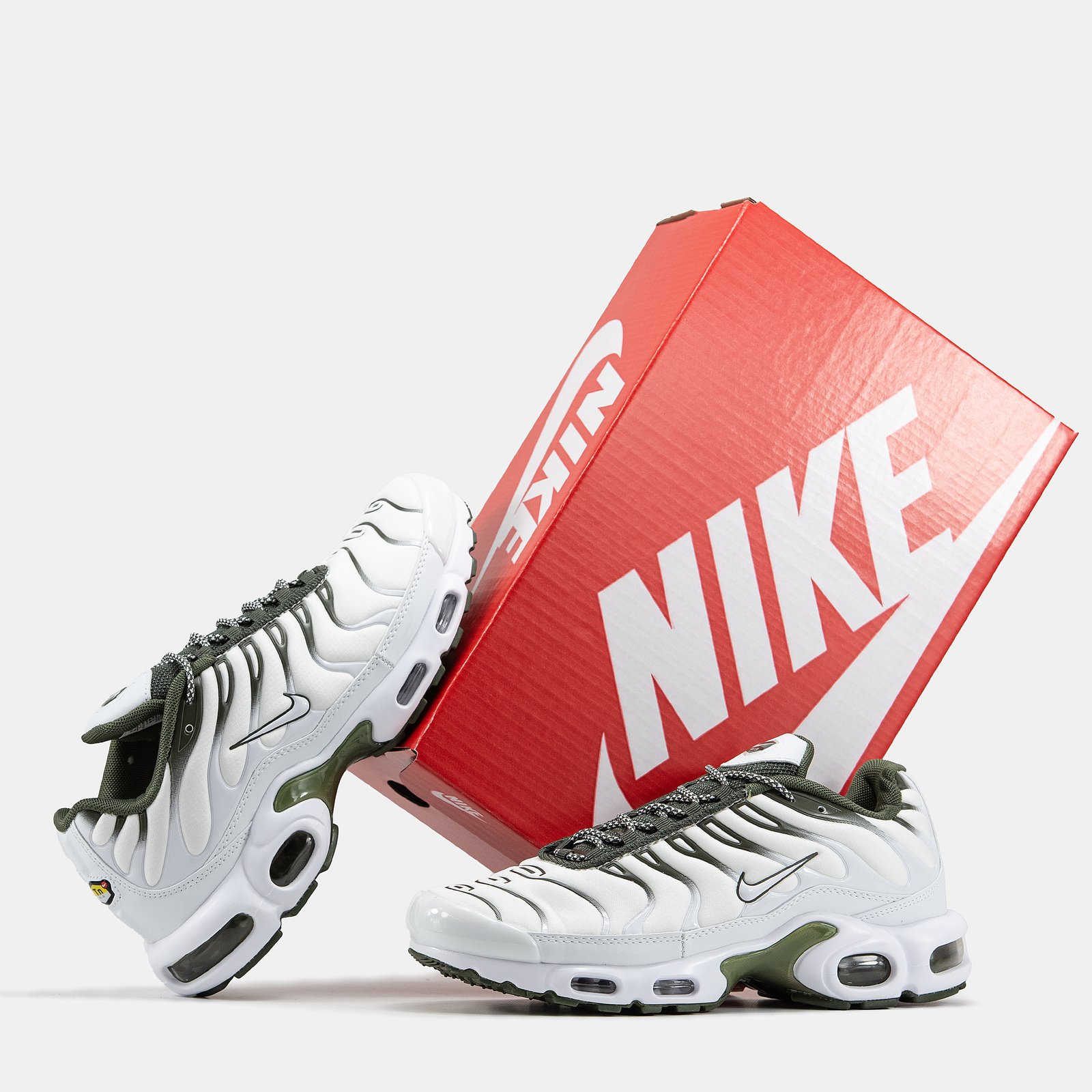Nike Air Max Plus In White And Olive